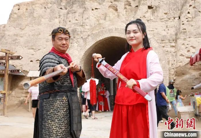 当天,参加“台青黄河游记”主题活动,沿着黄河一路西游的台湾青年们,来到宁夏镇北堡西部影城,身穿服饰道具,化身“至尊宝”“紫霞仙子”等角色,穿越再现《大话西游》中的经典场景。