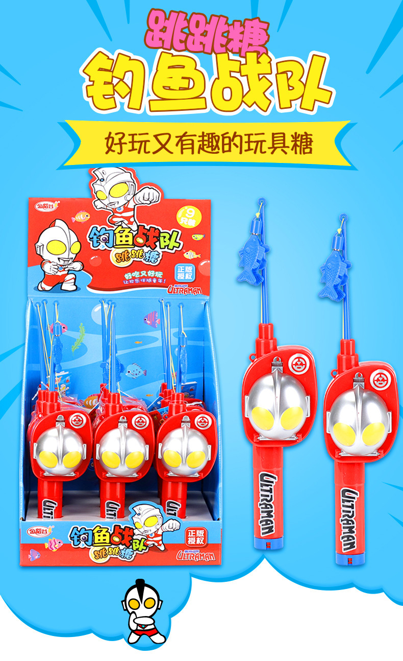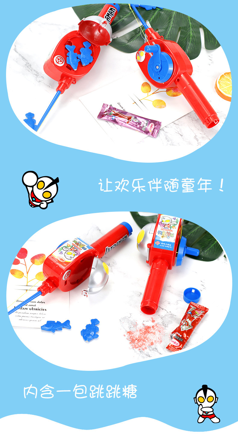陈瑞武:金稻谷奥特曼钓鱼竿玩具糖果创意益智过家家糖玩网红儿童休闲零食