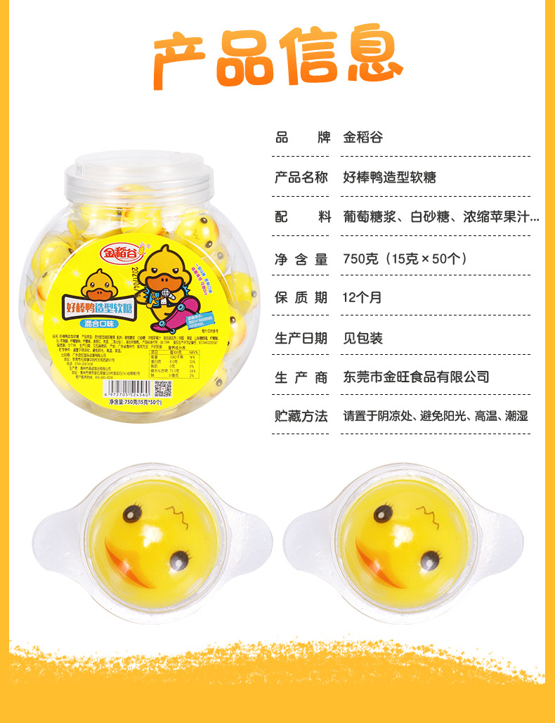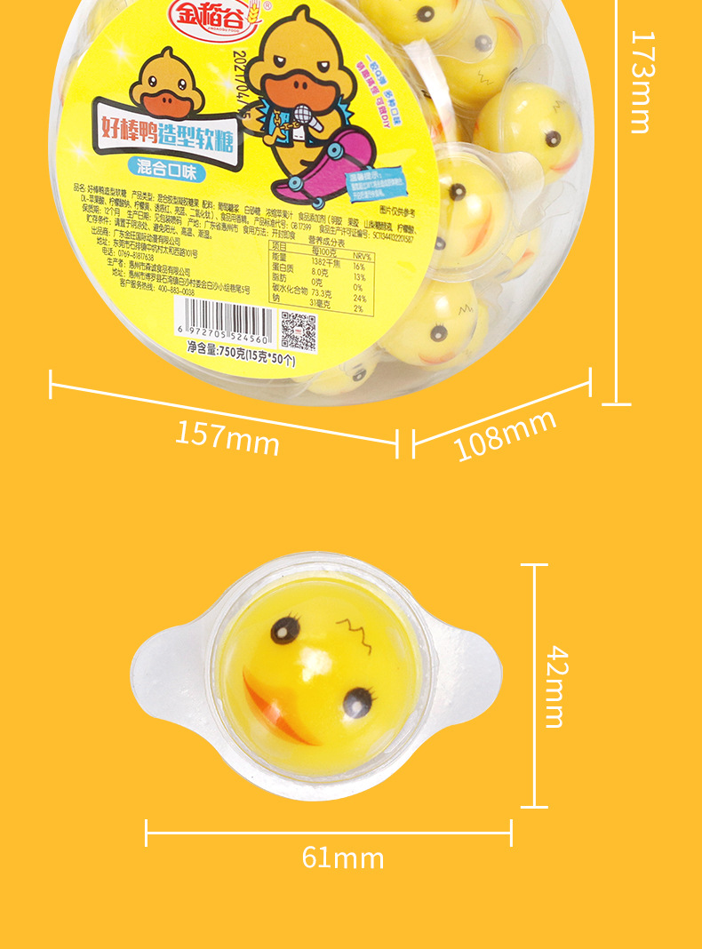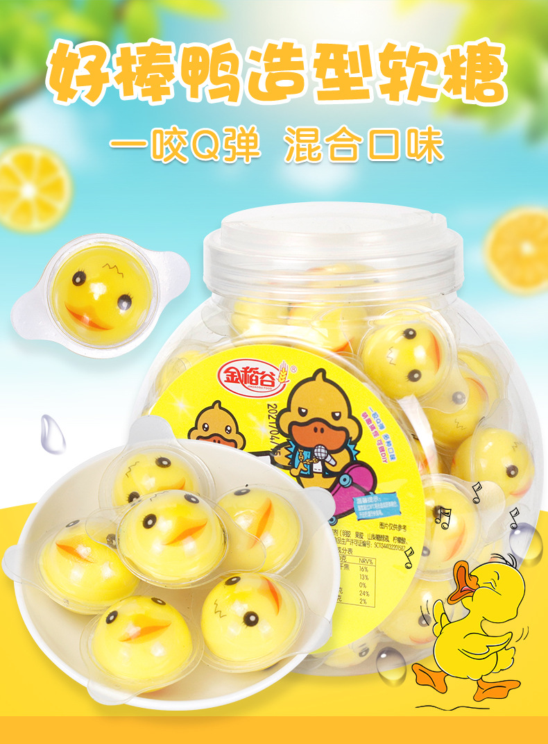 陈瑞武:金稻谷15克小黄鸭造型软糖 儿童网红零食 桶装糖果休闲食品