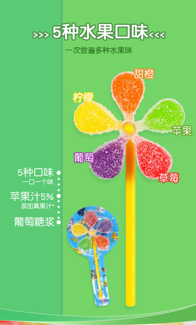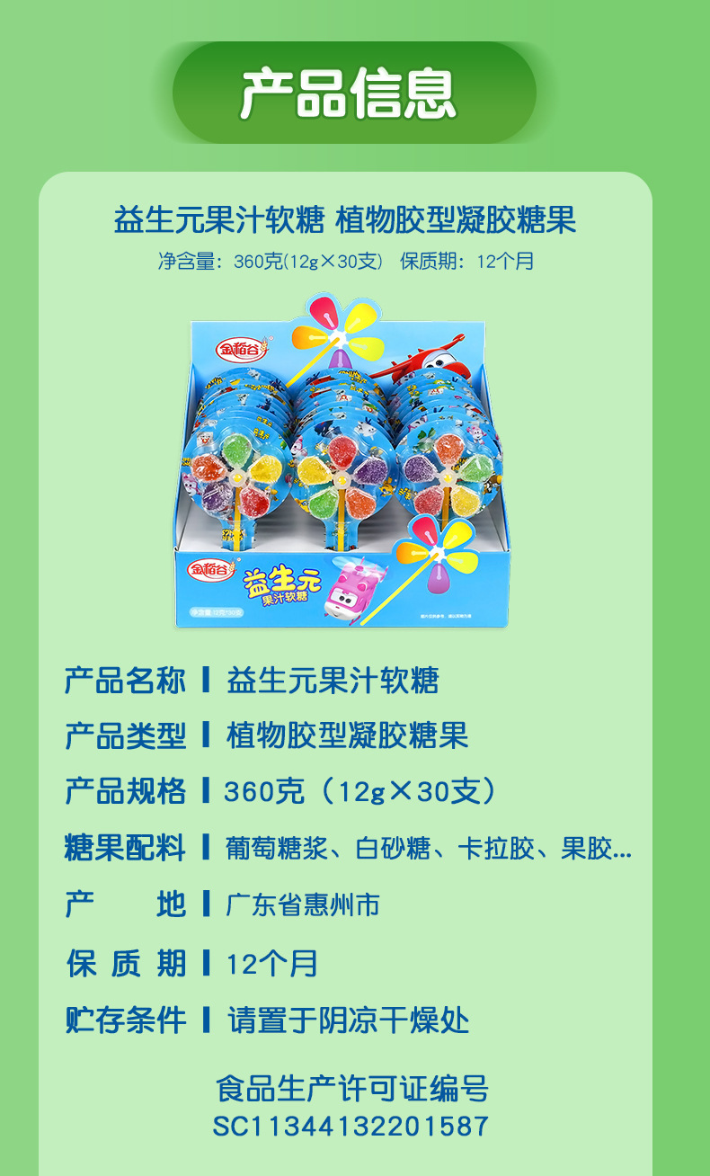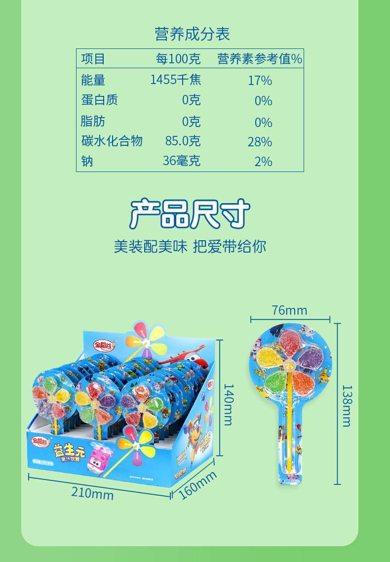 陈瑞武:金稻谷益生元五彩风车糖软糖儿童零食 盒装糖果卡通超飞棒棒糖