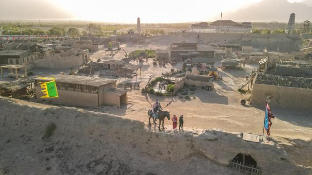 镇北堡影视城曾经是周星驰拍摄《大话西游》电影的取景地,现在拍戏用的土城楼,每天仍然很多粉丝前来打卡。他们会租或买一套朱茵所穿过的红色长裙,来完成打卡照。