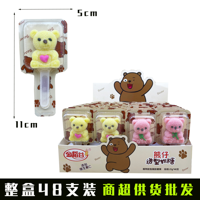 陈瑞武:儿童创意金稻谷小熊动物造型棒棒糖软糖维生素vc糖果