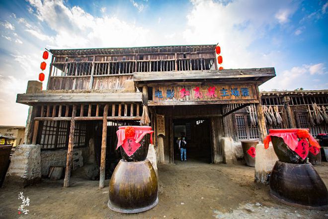 对于影视迷来说,在这里能看到许多熟悉的场景和镜头,比如电影《红高粱》的拍摄场景之一——李大头家的高粱酒坊。30多年过去了,高粱酒坊依然是当初的模样。酒楼前摆满了大大小小的酒缸,一进酒楼,仿佛有浓浓的酒香扑鼻而来,重温着当年电影拍摄的场景。