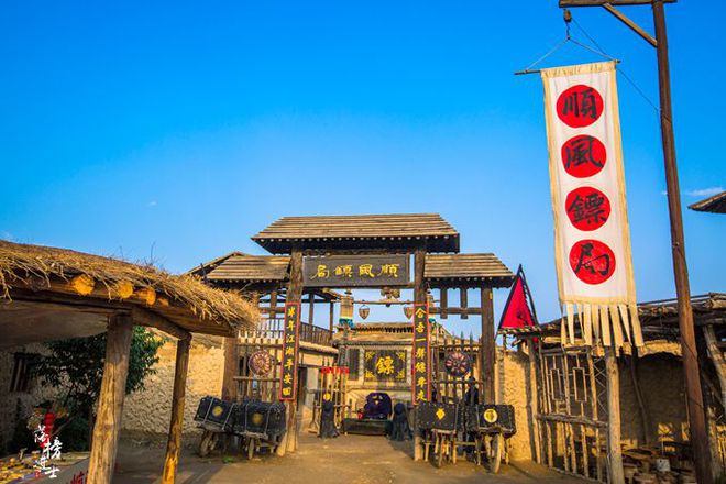 整个影视城分为两处,一处是明城,一处是清城。明城始建于明代弘治年间,是古代兵营,在清乾隆三年被地震摧毁。到了清代,为防御外族乘虚而入,在震毁的“老堡”旁边不到200米处又修建“新堡”,距今已有290多年的历史。