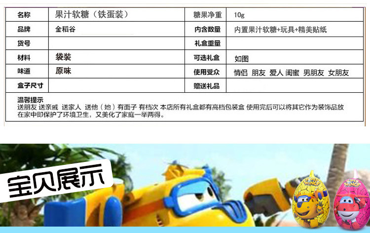 陈瑞武:金稻谷10克正版超级飞侠果汁软糖儿童零食卡通蛋糖果奇妙蛋玩具糖