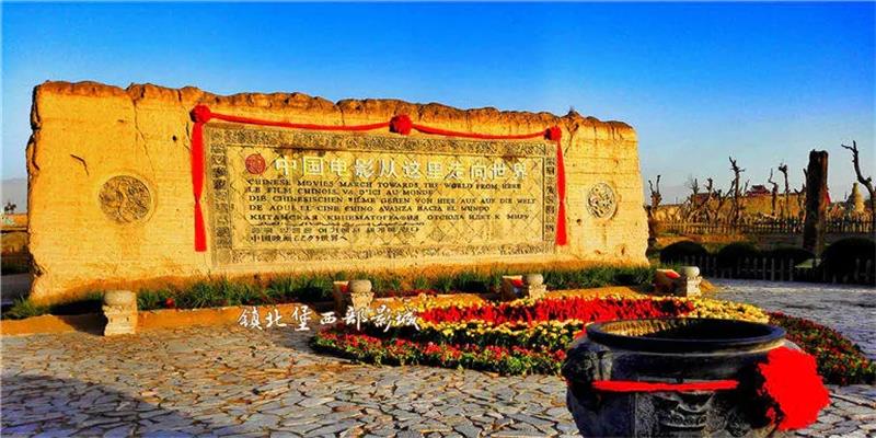 影城由两座古城堡构成,沿山公路边的古城堡称为“明城”,是建于明代弘治年间的一所驻扎边防部队的兵营,在清代被地震摧毁。“清城”是“明城”颓塌后在乾隆年间修建的。这种古城堡,俗称“土围子”,是中国西北地区特有的“覆土建筑”,完全用石夯擂筑黄土建成,除了城门,墙体上没有一块砖。经过数百年雨雪风霜及人为破坏,到本世纪五六十年代,边防要塞的雄姿早已面目全非。城墙上的黑窟窿,就是1958年大跃进时所谓“大炼钢铁”留下的“土高炉”遗迹。“清城”城墙下的大洞,就是当时民工掏出的“宿舍”;原来驻扎在兵营中的军队,也被本地的牧羊人所取代。在80年代初,由著名作家张贤亮发现并创办而成。国内比较知名的影片如《红高粱》、《新龙门客栈》、《双旗镇刀客》还有《大话西游》等七十多部影片都曾在此取景拍摄,门票四十元/人。一进门的影壁上写着“中国电影从这里走向世界”,原来在我国的影视城中,镇北堡影城出产的影片最多,获得的各种电影大奖最多,升起的明星最多。