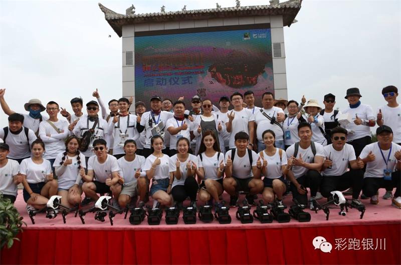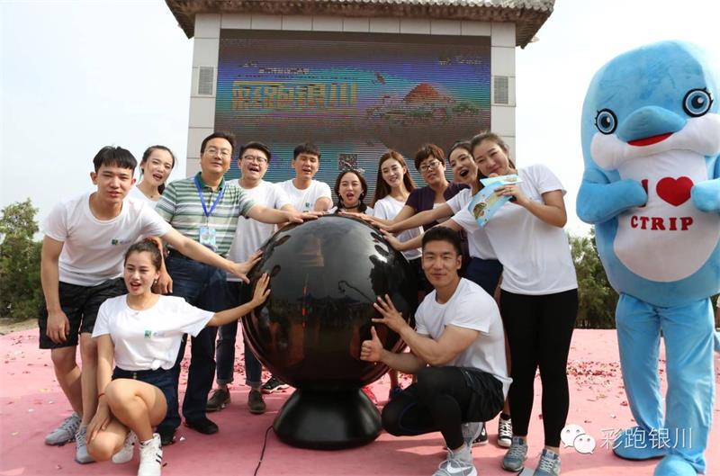 银川市体育旅游局、携程旅行网、镇北堡西部影城领导与彩跑队员共同启幕“彩跑银川”