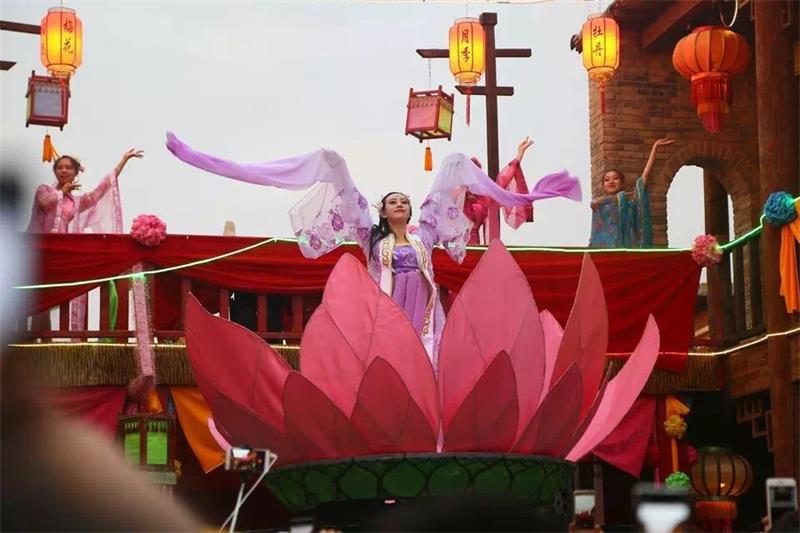 相比老银川一条街的恬静,清城堡让你领略到的是截然不同的繁华与热闹。十多位古代艺伎翩翩起舞、伴随着悠扬的乐曲,花魁从巨型莲花中缓缓绽放,给人一种唯美的享受。