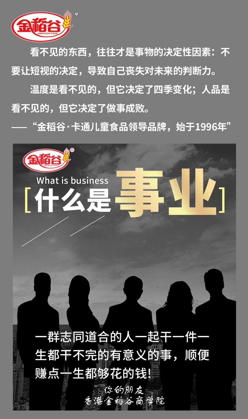 正是有明确的目标,金稻谷才有了稳步向前、不折不挠的动力。正是有了奉献社会的初心与担当,金稻谷才会在发展中收获更多的认可与支持。也正是因为有了分寸得度的人际关系处世之道,金稻谷的合作与交流等才会如此和谐。而正是有了品牌管理者与团队的正直人品,金稻谷才会迈向成功之路。更正是有了不屈的勇气,金稻谷才会克服途中的困难、迎难而上。更是认知与思想的差异与高度,让金稻谷有了非同凡响的收获与成绩。