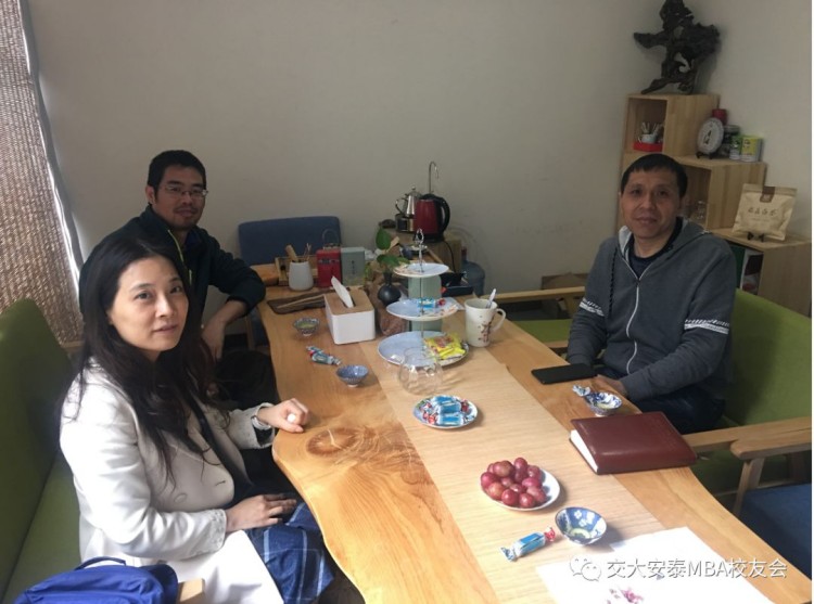 近日,上海交通大学安泰MBA校友会(以下简称“校友会”)常务副秘书长、暨大物联网实验室联合创始人杨怡,2008级校友、悦鸟英语创始人唐雪松,以及秘书处办公室罗湘一行3人拜访了上海交通大学安泰2005级MBA、安泰MBA校友会理事、上海资智网络科技有限公司(以下简称“资智网络科技”)创始人总经理;四不象(上海)企业管理咨询有限公司(以下简称“四不象咨询”)联合创始人张守辉。