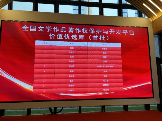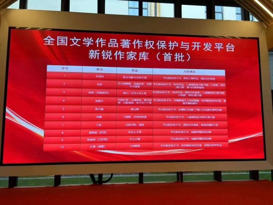 随后,全国文学作品著作权保护与开发平台“新锐作家库”和“价值优选库”启动,中国作协社联部主任李晓东、上海文交所常务副总裁宁江生分别宣布首批入选作家作品名单。