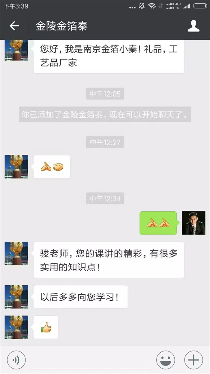 骏君老师的课结合了当前最前卫的人人互联、物物互联、业业互联的潮流大势,讲解了传统网络营销与微营销、全网覆盖、VR+AR,如何引爆互联网传播的道、法、术,2天时间,一气呵成,干货满满,非常实用!