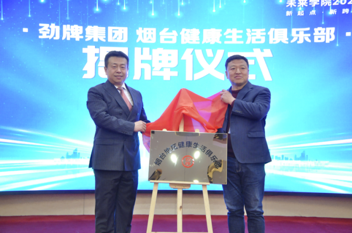 劲酒集团作为本次活动的联合承办方,活动现场由吉民经贸有限公司董事长路吉民和未来学院执行院长刘翼共同为劲牌公司烟台健康生活俱乐部揭牌。
