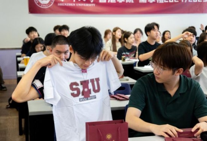 深圳大学代表团还为香港学院学生赠送了校徽和校园文化衫。新生代表李嘉晟在发言中表示,作为深圳大学香港学院的第一届本科生,他深感自豪。深圳大学建立香港学院是为香港青年提供优质高等教育资源的一次全新探索,既是时代的机遇,也是香港青年成长与发展的新起点。他希望通过四年的学习不断提升综合能力,掌握扎实的学术知识,习得丰富的实践技能,与同学们携手并进,用“千磨万击还坚劲”的精神砥砺前行、探求真理,不忘初心、追逐梦想。