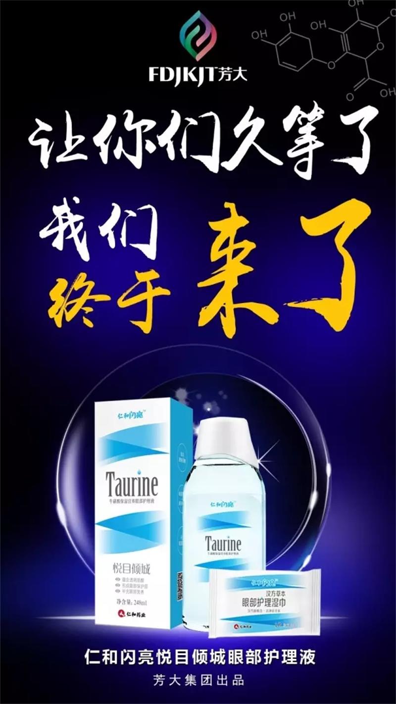 据悉,芳大集团新品——仁和闪亮悦目倾城眼部护理液,是为了满足现代社会环境污染、学习工作压力大、用电子设备、化妆等各种因素导眼部处于亚健康状态而精心研发出来,在中国拥有四亿以上人群市场刚性需要。新品护理液含有牛磺酸、透明质酸钠、茶多酚、维生素B6、维生素B12等成分。除了我们常见的几种成分之外,还大胆、先进的采用了牛磺酸这一特殊的成分。通过对牛磺酸成分的有效提取和利用,借由眼部护理液使得人体眼球充分、有效的吸收,从而达到修复眼部损伤、祛除脏东西,改善眼部健康等作用。此外以100%纯植物提取的营养物质为原料,不含有抗生素、防腐剂等对眼部护理有害的物质,并严格遵循药用生产标准,杜绝污染,确保产品品质安全、可靠。洗眼杯改进更是直达世界顶级水平,提高了体验舒适度,清洁彻底、营养保湿、安全放心。