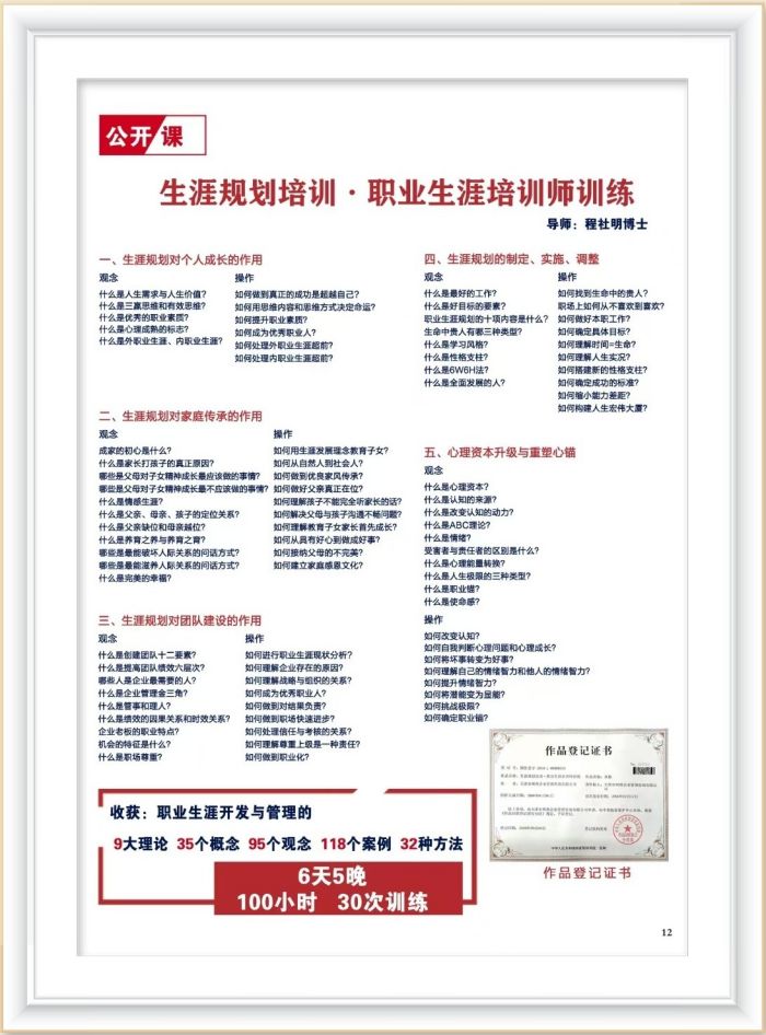 程社明老师的生涯规划培训之职业生涯培训师训练具有以下重要特点和内容: