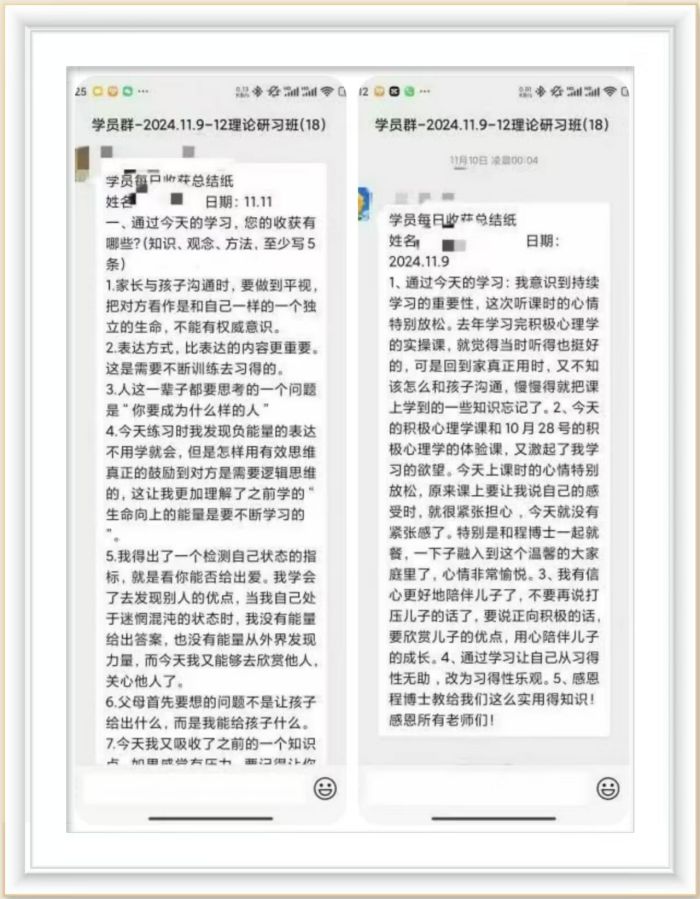 课程中学员们收获颇丰,并且积极的在学员群中交流自己每天的收获和体会,从这些收获和体会中每个人又重新获得的新的感受,并且被强大的能量滋养着。