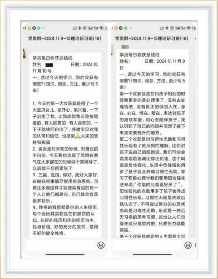 在为期四天三夜的培训中,学员们经历了由迷茫到清晰,再到逐渐吸收并能根据自身的实际情况认识到问题出在什么地方,每个人都对这种转变感到惊喜。