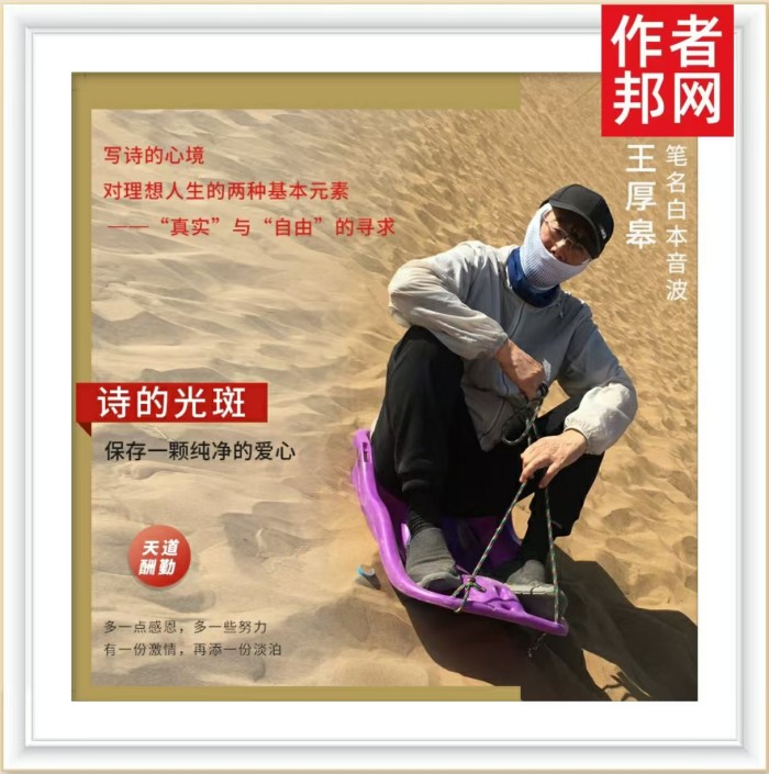 王厚皋老师认为,诗歌是一种情感的抒发和思想的表达。它不仅仅是文字的堆砌,更是灵魂的对话。在《诗的光斑》中,他用精炼而富有节奏的语言,捕捉了生活中的点滴光斑,将它们转化为触动人心的诗句。这些诗句如同光斑一般,虽然微小,却能照亮读者的心灵,引发共鸣。