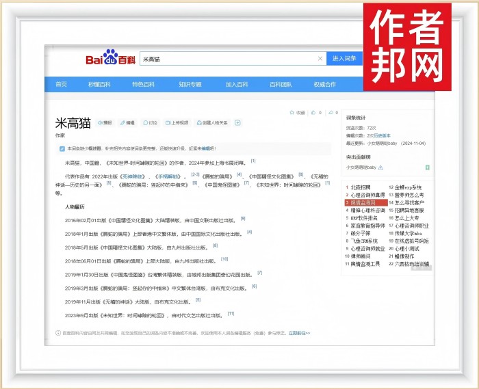米高猫的个人百度百科成功上线,不仅是对他个人成就的认可,也是对他影响力的肯定。在这个平台上,公众可以更全面地了解米高猫的生平、作品和商业成就,以及他在文学和商业领域的贡献。百度百科的上线,为米高猫的个人品牌建设提供了新的展示窗口,也为公众提供了一个便捷的了解渠道。