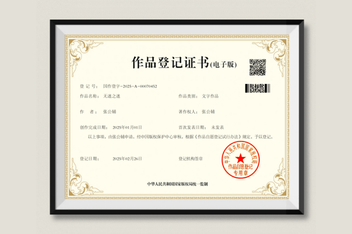 此次《无迷之迷》能够成功获得版权登记证书,也充分说明了该作品在文学价值和创作质量上的高度认可。