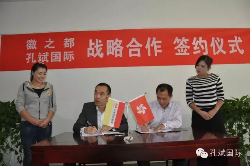 (孔斌国际孔斌先生、徽之都牛子颜先生签约仪式正在进行中…)