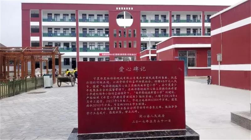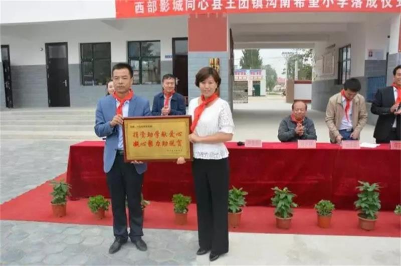 宁夏华夏西部影视城有限公司秉承中国民族尊师重教、扶危济困的传统美德,以捐资助学的善举回报社会,捐赠40万元人民币,援建“西部影视城同心县王团镇沟南希望小学”。在宁夏青少年发展基金会的监督管理下,在西部影视城同心县王团镇沟南希望小学建校领导小组的直接领导下,“西部影视城希望小学”的建设严格按照《希望小学建设管理规则》组织实施,工程于2016年4月开工建设,2017年5月竣工。学校占地面积6304平方米,建筑面积3243平方米,可容纳500名学生就读。