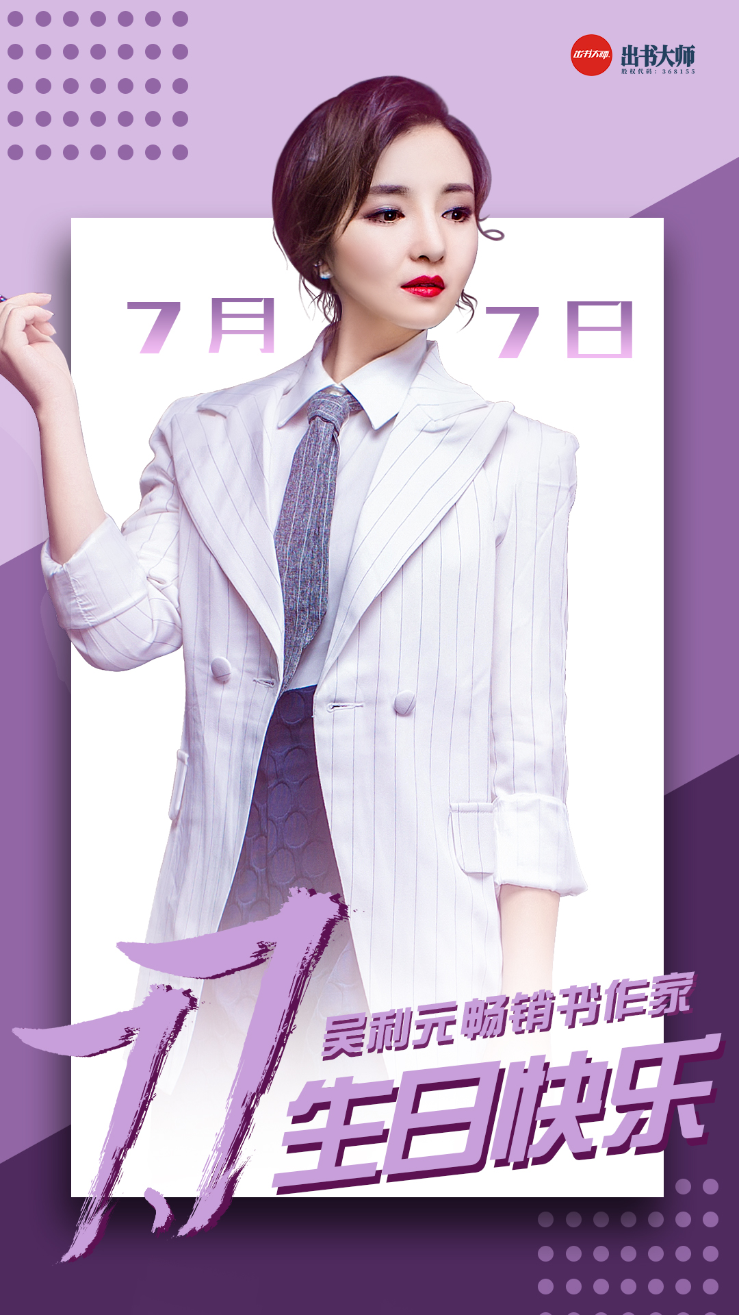 吴利元:衷心祝愿畅销书作者、芳大集团执行董事、清华才女吴利元 生日快乐、笑口常开