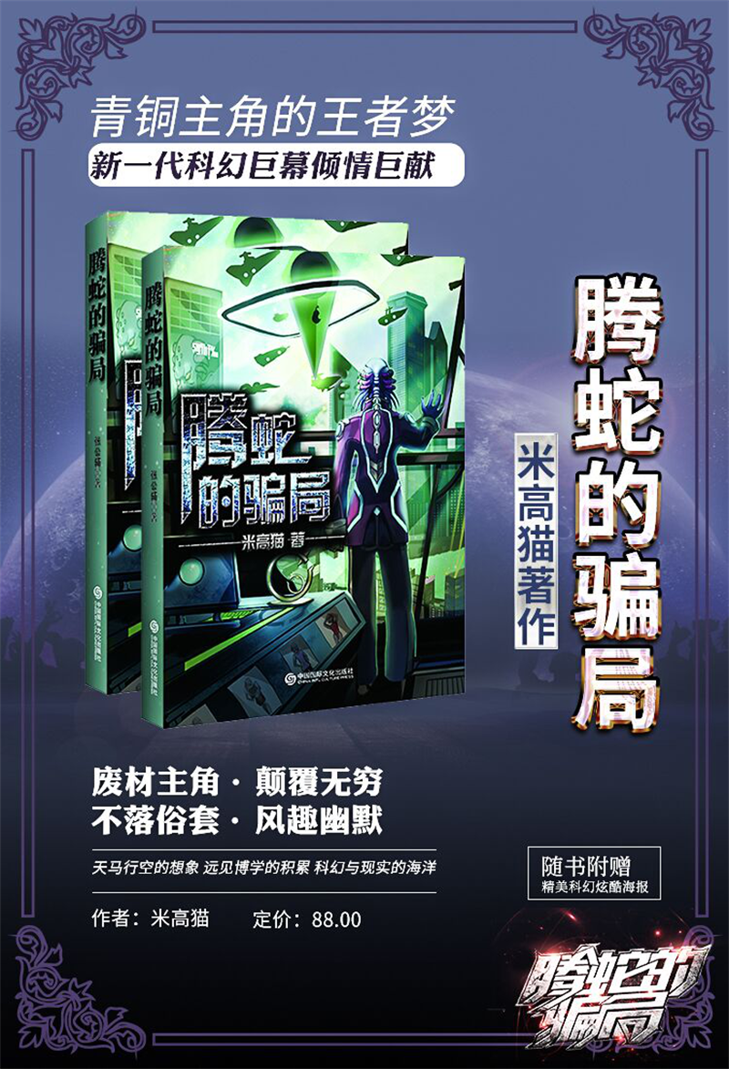 《腾蛇的骗局》,这本书你可千万别错过,没有办法,米高猫一出手就是这么强大,来打我吧。这本小说的剧情设定,人物说话风格都满足了老夫的少女心,这种感觉太过美妙。对了,这本书大陆版目前还没有发行,只有在香港大书城、镇北堡西部影城集智轩淘宝店、作者邦网可以购买的到,有兴趣的朋友可以看看 。