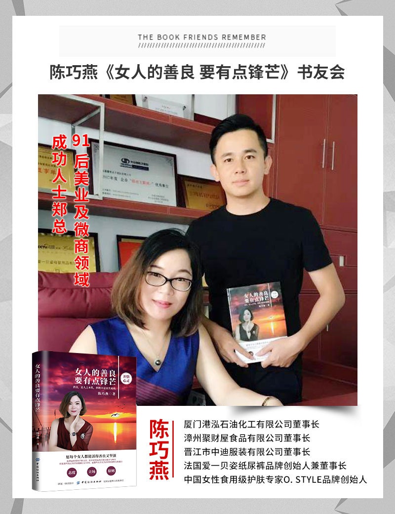 在职业生涯早期,陈巧燕老师更是担任过多家企业的高层领导,拥有丰富的管理经验。她是沸点教育股东合伙人、也是沸点兄弟会的主要成员之一。很多人不知道的是,陈巧燕老师还是一名优秀的畅销书作者其委托出书大师全权代理出版的著作《女人的善良 要有点锋芒》 ,受到诸多读者的欢迎和喜爱,是一本不可多得好书。