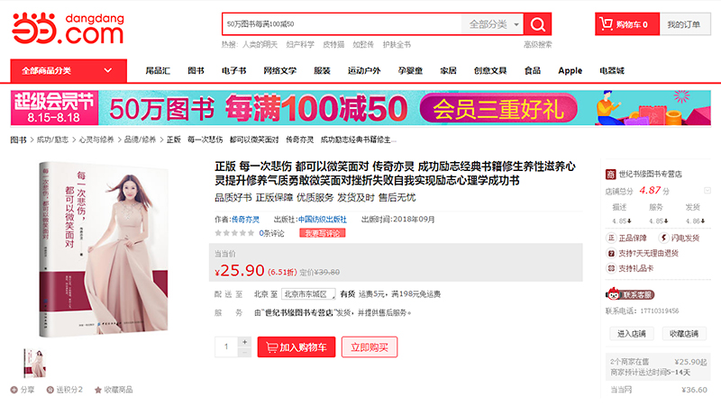 (福州云轩文化讯)近日,根据出书大师网最新消息,酝酿已久的《每一次悲伤,都可以微笑面对》一书在广大读者的热烈期盼下正式登陆图书电商当当书城。与此同时,当当书城也将此书列入首页推荐,获得了极大的关注度和曝光度,在当当书城的人气热度丝毫不亚于某些畅销书籍。