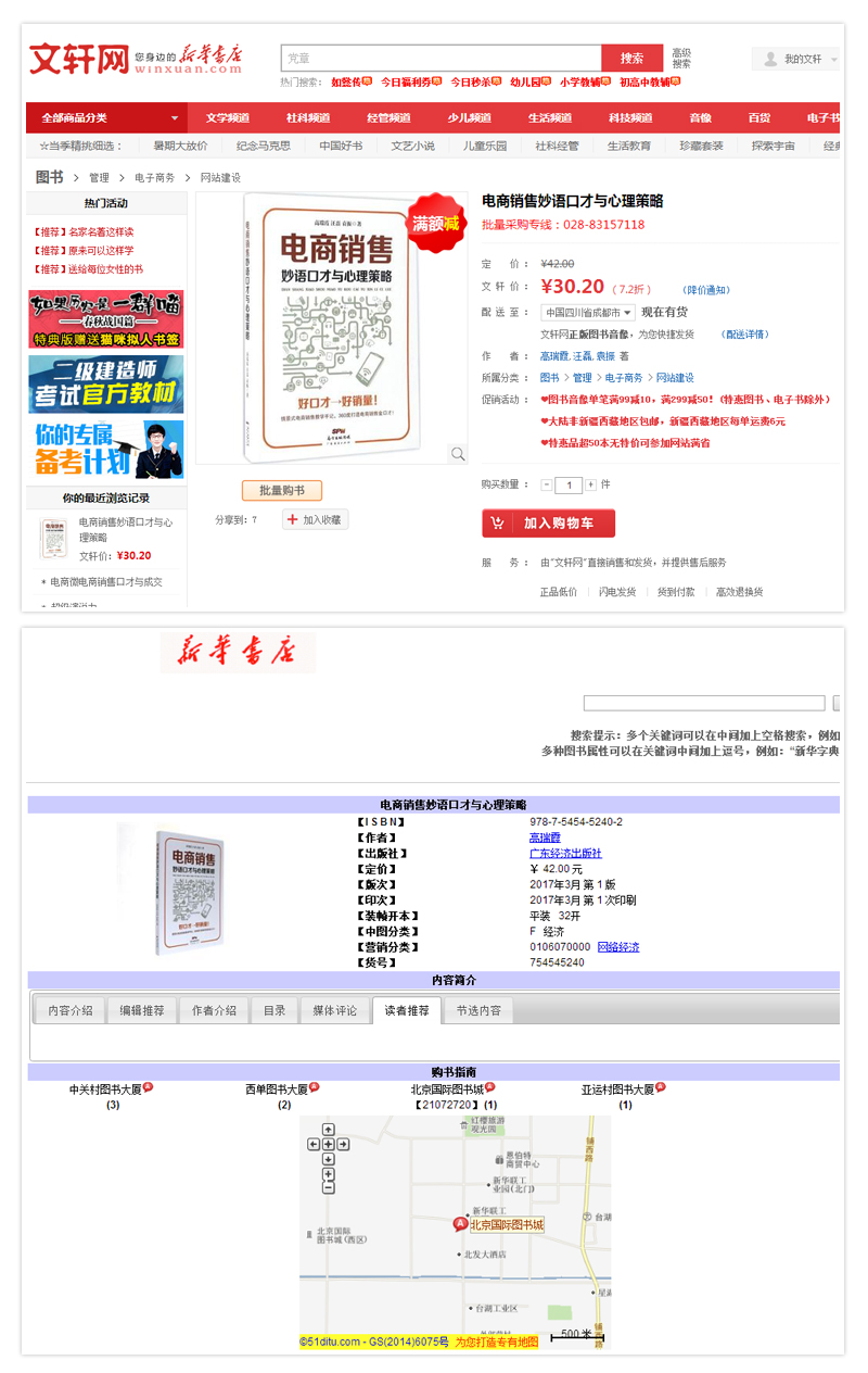 因为这本书在读者群的优异表现,所以很快就登陆了新华书店销售。新华书店在中国代表着权威,是新闻出版界的一条龙企业,在政府和各大机关团体,以及企事业单位,学校中都有着极其崇高的地位。所以说,《电商销售妙语口才与心理策略》能够登录新华书店,进一步证明袁榮骏老师的实力,加上袁榮骏老师在本书上倾注的心血,能够在新华书店畅销,也实属意料之中。