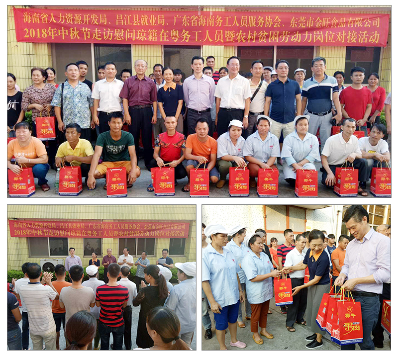 (福州云轩文化讯)2018年9月19日,海南省人力资源开发局、昌江县就业局共赴东莞金旺食品有限公司,对食品厂的务工人员开展帮扶慰问活动。这次走访慰问活动场面壮观,为在岗贫困户工人带去了温暖。