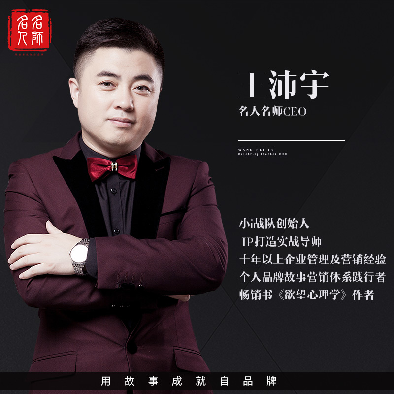 王沛宇老师团队旗下拥有名人名师团队,是一家专注于通过图片·视频·文章等素材构建故事·用故事成就自品牌·用自品牌形成个人IP并进行自传播或者网络推广传播的互联网营销文创类高科技企业。