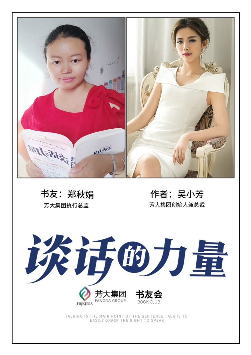 在郑秋娟的养生之路上,不得不提的一位贵人就是芳大集团总裁吴小芳女士,也是知名畅销书《谈话的力量》的作者。吴女士作为微商行业的明星人物,在很多微商代理的眼中都是生活的目标,但在很多时候,她和每一个芳大人并没有什么区别,每天为了将产品做的更好,让更多的人学会养生而忙忙碌碌的工作着。作为吴小芳女士的书友,郑秋娟对《谈话的力量》有着一份独特的感情,这本由出书大师网代理出版的书籍,让她在迷茫中找到了努力的方向,也让她把在书中学到的知识运用到了实际和顾客的沟通上。把这本书看了几遍的她,每次读都会有新的收获,每一次在缺乏自信,找不到合适的沟通的方式时,都会从这本书汲取力量。