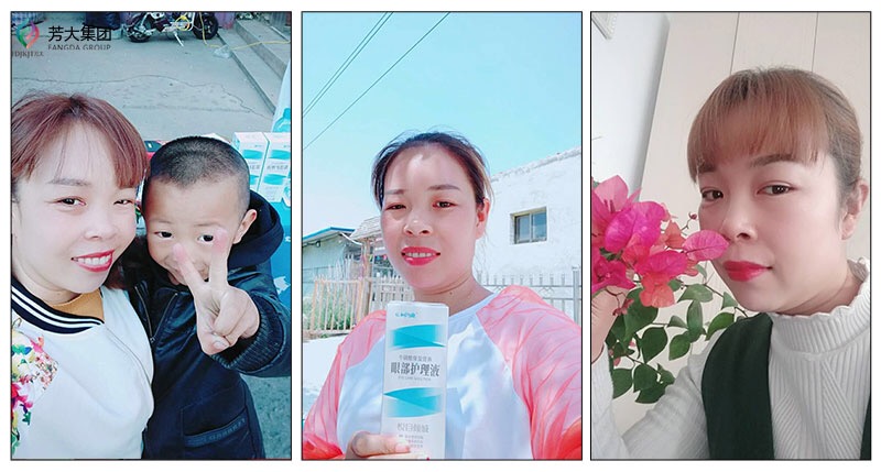 来自山西运城的赵小艳,在接触到芳大集团之前,只是一名在家带孩子的宝妈。在偶然间遇到了老同学,进而接触到了洗眼液。因为她有先天性泪管堵塞,眼睛经常不舒服。因此在第一次使用洗眼液洗出了细长条的杂质并缓解了眼睛的不适之后,赵小艳便被这个品牌征服了。本着即使卖不掉也可以自己用的初衷,赵小艳用很少的资本便开启了自己的微商之路。