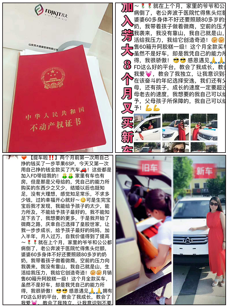 接近什么样的人,就会走什么样的路,人生路上最大的幸运莫过于有人可以鼓励你、指引你、帮助你。加入芳大之前的王盼盼是一个很普通的全职主妇,和大多数女孩一样,恋爱、结婚、生子,每天围绕着家庭、老公、孩子转来转去,生活毫无波澜。一次偶然的经历,让她因为月经不调而结识了阿胶糕,不仅调理好了自己的身体问题,还让她看到了宝妈原来也可以活的如此精彩。于是,在2015年,她正式加入了芳大,成为了一名微商创业者。