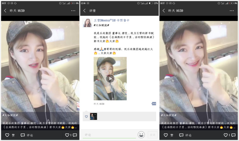 自拍视频里,唐忱身穿格子外套,头戴格子帽子。棱角分明的脸部线条,灵动而又纯净,带着甜美的笑容甜甜的表达了她对王雪老师新书的祝福:“祝王雪姐姐新书《在难熬的日子里,活的得畅快淋漓》大卖大卖!”