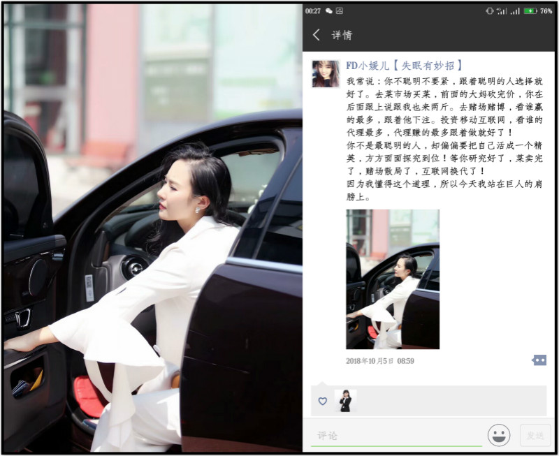 吴利元女士加入芳大之初,芳大也不过是一个普通的微商小团队,但是她精准的眼光,发现了芳大独特的一面。不管是芳大人所散发的那种激情还是产品所带来的信任感,都让她对这份事业充满了信心。在当时,微商品牌何止千万,但商海沉浮至今,无数品牌的没落无不证明了她眼光的独到,也正是这种独到的眼光,让她站在巨人的肩膀上,拥有了不一样的人生。