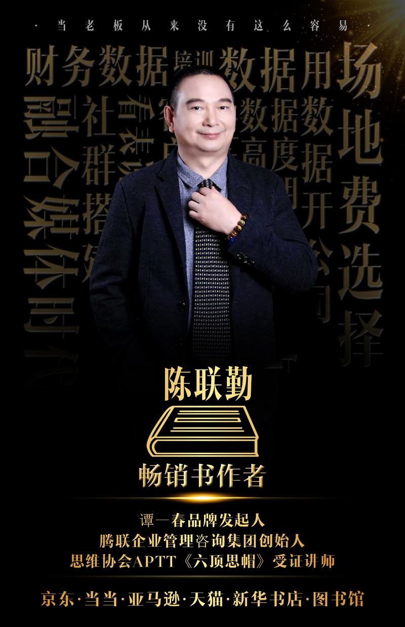 陈联勤老师是美国高级思维协会APTT《六顶思帽》受证讲师、腾联企业管理咨询集团创始人、多家知名企业管理顾问、谭一春品牌发起人。每一个头衔与职位都是陈联勤老师不懈奋斗的证明与结果。