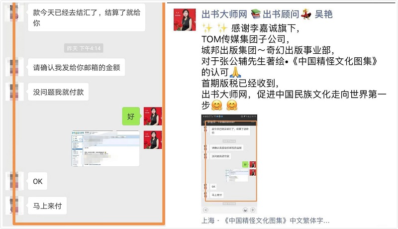 日前,出书大师网策划出版、宁夏镇北堡西部影城董事长米高猫先生倾情呈现的著绘《中国精怪文化图集》获李嘉诚旗下,TOM传媒集团子公司城邦出版集团的奇幻出版事业部的认可,目前已经收到首期版税,这是《中国精怪文化图集》的魅力呈现,也是中华民族精神和文化的共同传承,展现了中华民族精怪文化的深远影响力。