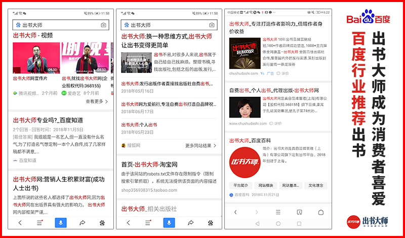 不仅如此,出书大师用“互联网+”做项目,不断霸屏百度词条,用专业和服务折服大众,终成为百度行业推荐和消费者喜爱的出书企业,促进个人品牌的价值变现。