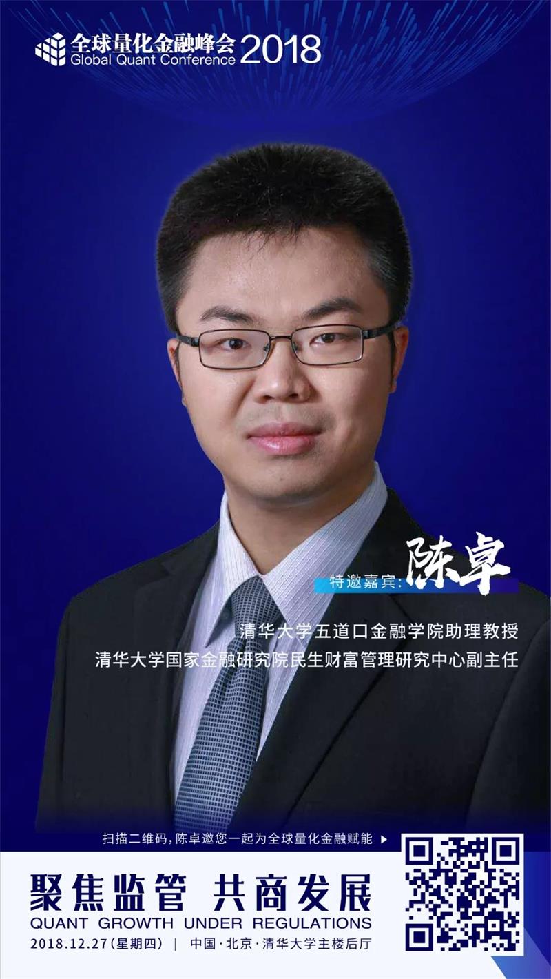 现任清华大学五道口金融学院助理教授,民生财富管理研究中心副主任。陈卓博士于2014年毕业于美国西北大学凯洛格商学院,获得金融学博士学位。在此之前,他获得了美国杜克大学的经济学硕士学位和北京大学工程学与经济学双学士学位。他曾经在中信证券的产品与策略部实习,主要从事全球资产配置和风险管理的研究工作。曾在花旗集团的投资银行部实习,参与了一家中国工程机械制造企业的香港IPO募集工作。