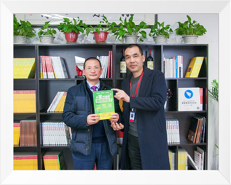 参观最后,孔斌先生赠送了自己的作品《从零开始学微信创业》,并与尹颖先生合影留念。出书大师网衷心希望未来能够有机会与尹颖先生正式成为合作伙伴,利用各自的企业优势,开拓新的发展领域,共同实现更高的企业目标!