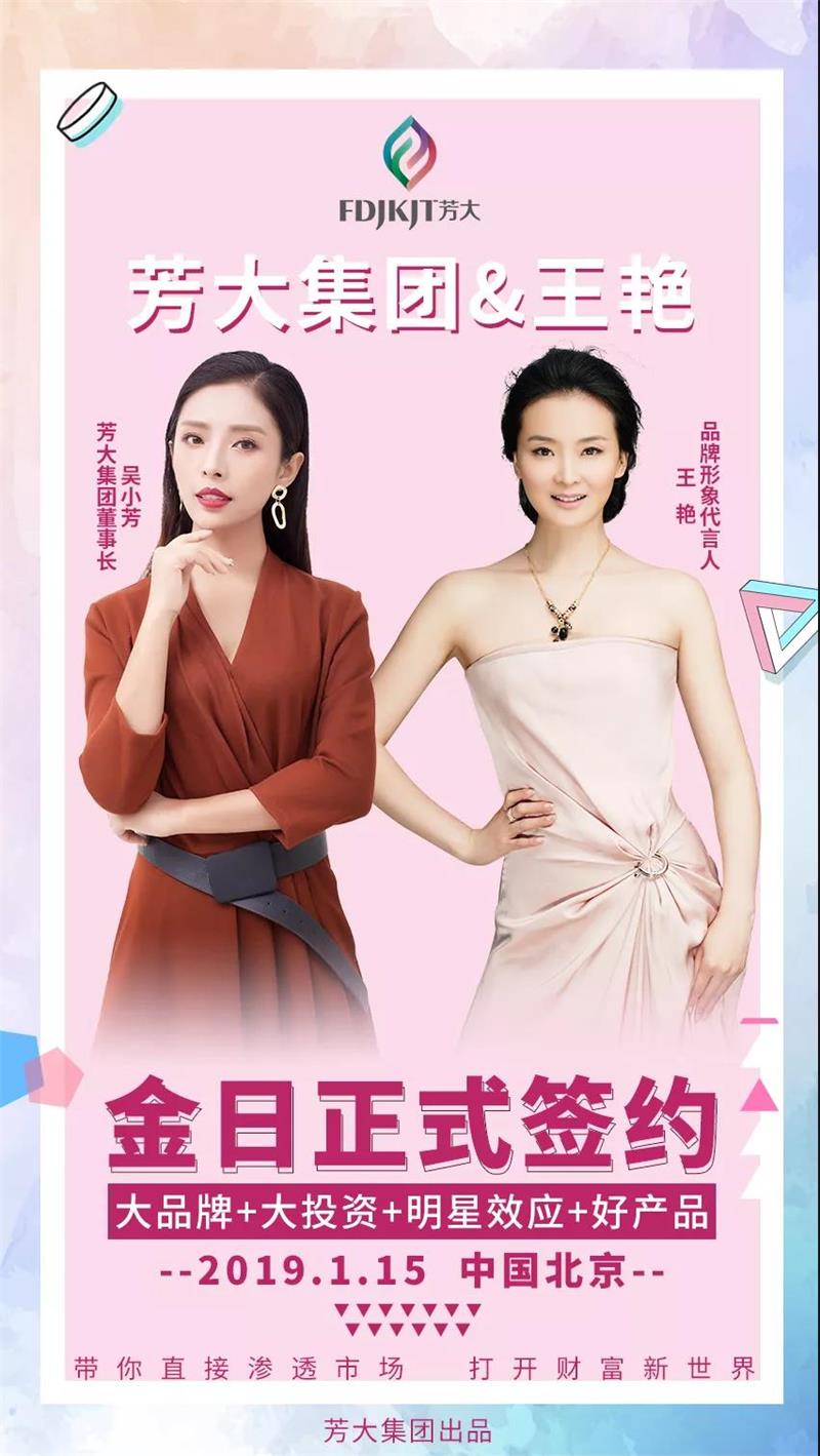 芳大集团董事长吴小芳表示,芳大集团一直以来都严格奉行“打造大众就业平台,做大健康微营销行业领跑者”的企业定位目标,汇集多方优势资源,凭借雄厚经济实力,走微营销品牌化道路。所以2019年打响品牌发展的第一枪,就在今天,芳大集团牵手演员大咖王艳,实现大品牌+大投资+明星效应+好产品,直接渗透市场,打开财富新世界。借此品牌携手签约,借力,借势。抢先体验品牌火速曝光,抢先创造市场流量风暴。