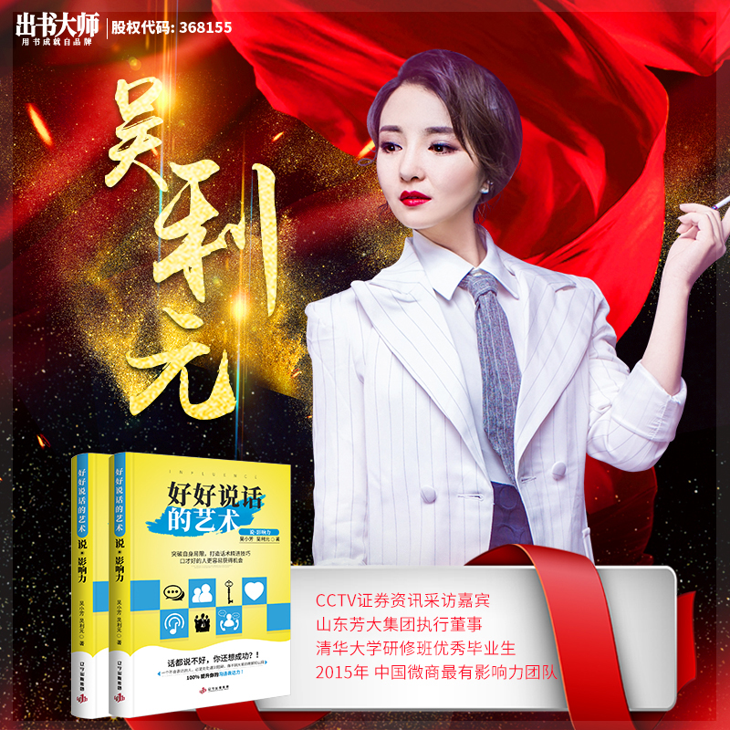 《好好说话的艺术》作者吴利元现如今已经成为身价千万的成功微商代表,CCTV证券资讯参访嘉宾,芳大集团执行董事,清华大学研修班优秀毕业生,荣获2015“中国微商最有影响力团队”。吴利元整理多年商场经验,委托行业精英出书大师网策划宣发《好好说话的艺术》一书。而由出书大师网策划宣发芳大集团执行董事吴利元《好好说话的艺术》的出版,正式解决了当下面临沟通的窘境,成为社交,创业以及生活的说话艺术,为生活创造佳境,为创业凭添。