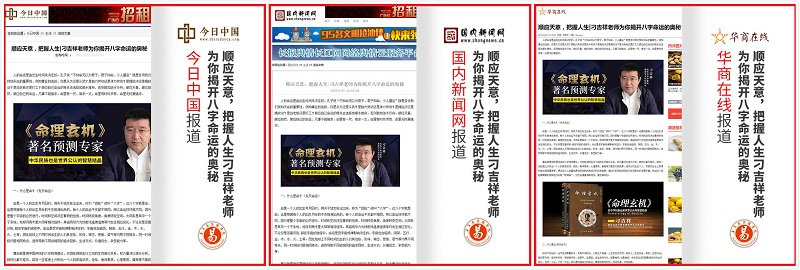 作为出书大师网的自品牌vip合作伙伴,刁吉祥老师的对于命理学诠释的新闻被今日中国、国内新闻网、华商在线、知科技、国际新闻网、亚联社、商业新闻网、新华商讯等诸多网络媒体进行了联合报道,占据了各大版面头条,带来了庞大的流量冲击。