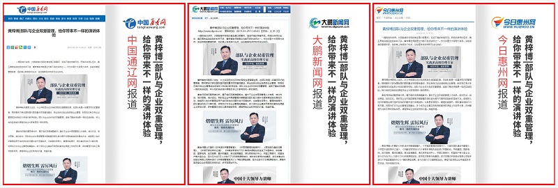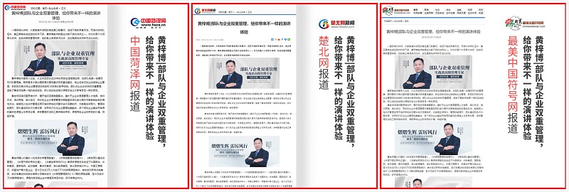 这种独特的管理思路,被黄梓博老师融合进了他的培训课程之中,并且受到了业内人士的一致好评。作为出书大师网的自品牌vip合作伙伴,近日黄梓博老师关于阐释部队与企业双重管理的新闻被最美中国符号网,楚北网,中国菏泽网,中国衡阳新闻网等多家权威媒体联合报道,引起了社会群体的广泛关注,有力地提升了黄梓博老师品牌形象的公众影响力。