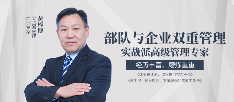 转业后,黄梓博老师投身于企业管理的研究当中。他将人才的培训,项目的管理以及企业组织的架构,与军事化的思维方法充分结合起来,真正实现了规范化,高效率的管理模式。同时,黄梓博老师尤其擅长把人性分析管理与组织问题存在形成进行深度分析,他在企业中高层领导智慧和中高层管理团队能力提升方面有独到的落地方法,帮助众多企业达成了实战目标。