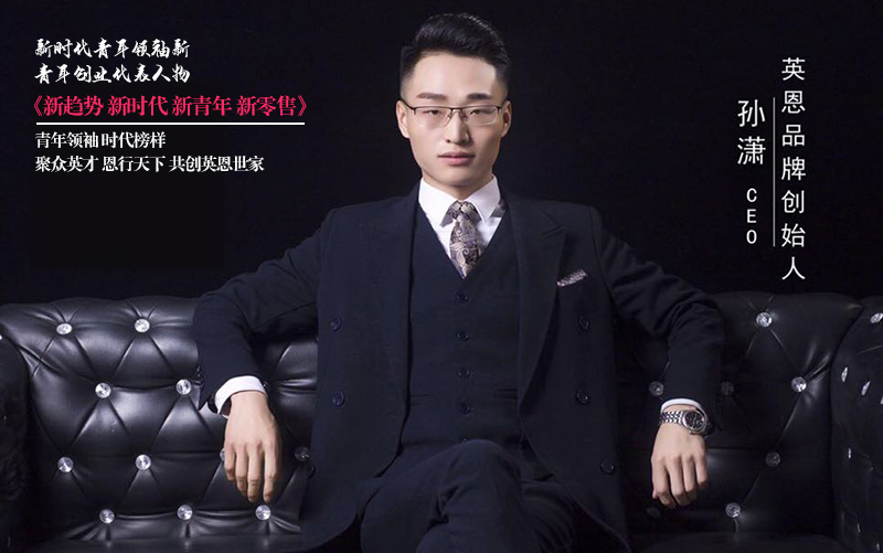 孙潇是新时代下杰出的新青年创业代表人物,年纪轻轻便已获得多个荣誉奖项。他是新时代青年领袖,也是社交新零售进入全新纪元的时代榜样。其一手创立的英恩。希冀打造一个青年人可信赖的品牌,专注治愈改善问题性皮肤,敏感性肌肤,同时修护保养皮肤。在品牌服务上,注重为消费者提供更多新颖,创意的附加价值,以最优质的产品和最用心的态度为消费者服务,打造轻医美护肤美妆品牌,大众消费的起的奢侈品!